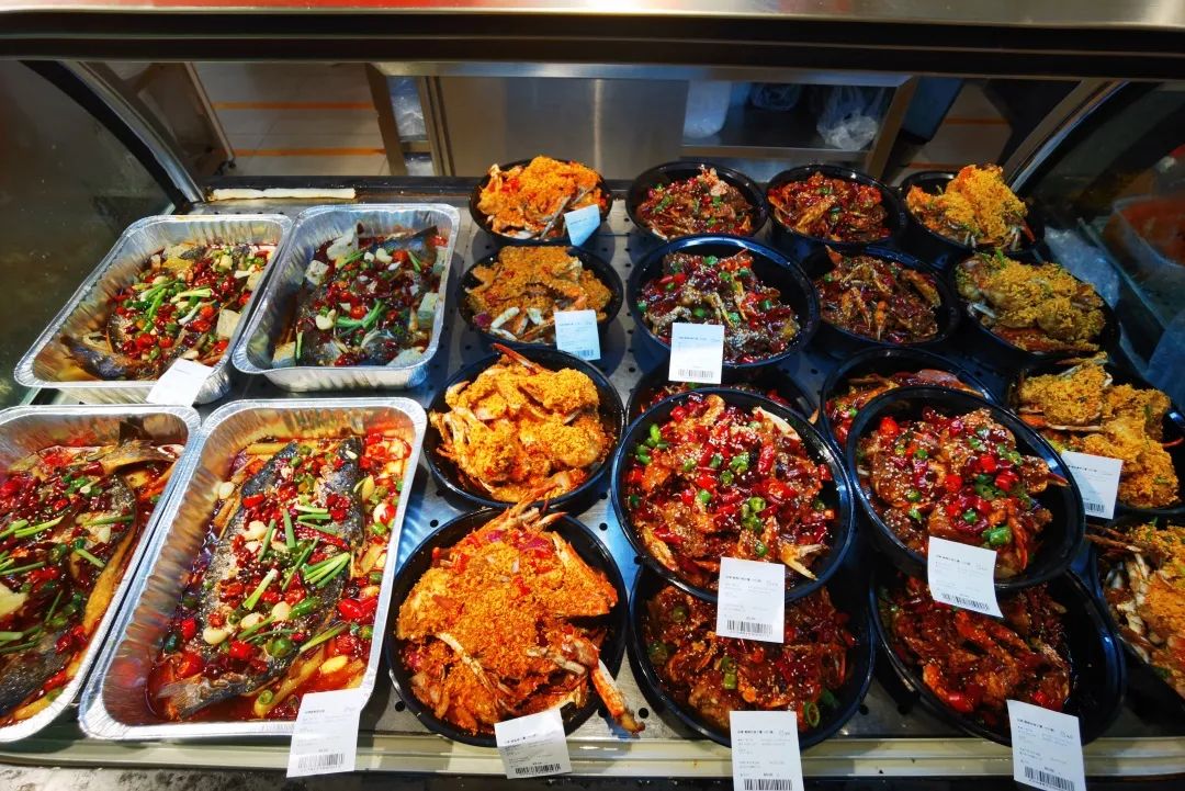 而单点的品类中包含香辣炒梭子蟹、蒸海鲜大咖、小龙虾神仙桶、铁板大鱿鱼串、麻辣黑豆花烤全鱼......满足市民多样化需求。