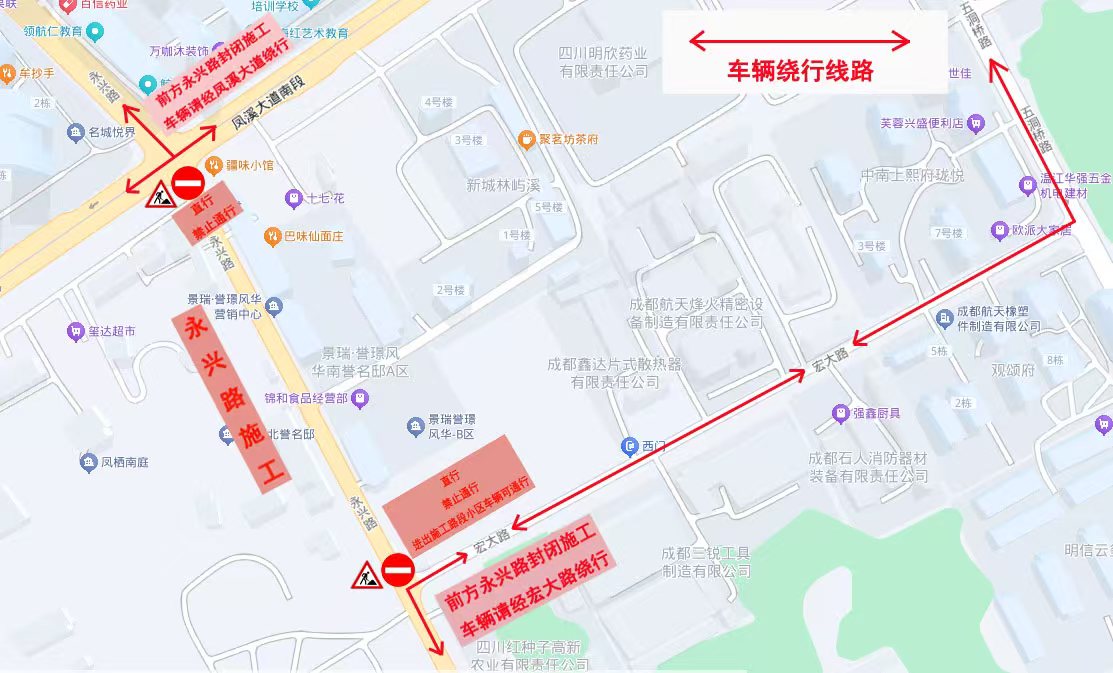 关于温江区永兴路与宏大东二路交叉口占道 施工的通告