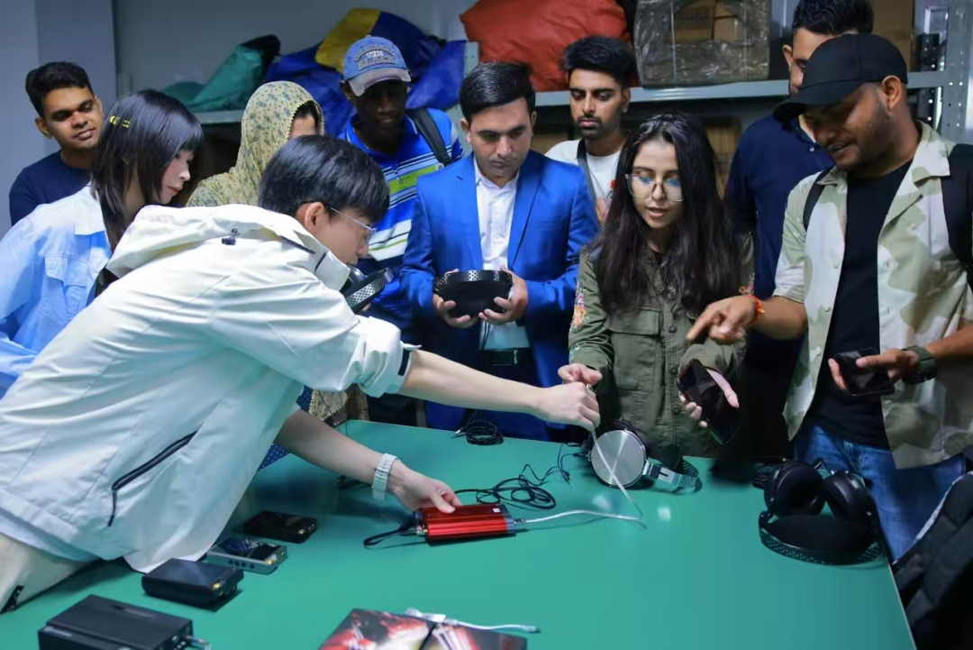 MOONDROP Technology Co., Ltd., based in the fertile industrial landscape of Wenjiang Hi-tech Zone, is a locally grown enterprise whose products are exported to more than 30 countries and regions worldwide. The international students stepped into the company’s factory, closely observed the assembly and quality check processes of high-precision earphones, and enjoyed an auditory feast presented by high-quality products “made in Wenjiang”.