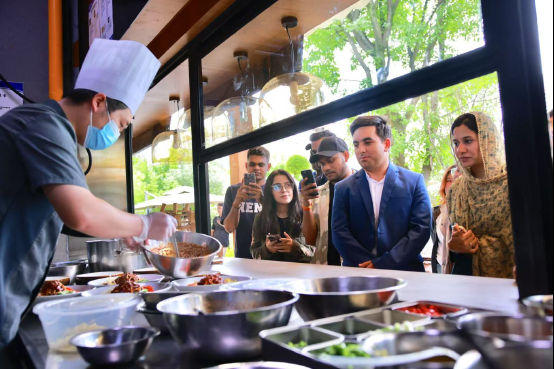 位于江安河畔的席萃小厨,独特的川西风情院落让人流连忘返。在这里,留学生朋友观摩了首席大厨现场制作川味凉面、凉粉和经典川菜回锅肉的全过程,体验了刚出炉的玉米粑粑、包子等特色小吃,川西坝子的味觉弥漫全场。