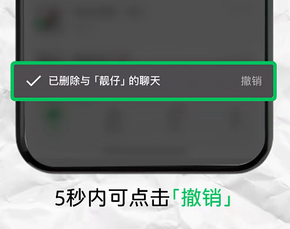 在微信,左滑删除单个好友或群聊聊天对话时,5 秒内可以撤销删除。