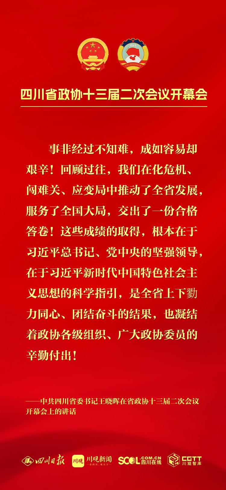 今年是中华人民共和国成立75周年,是实现“十四五”规划目标任务的关键一年,也是人民政协成立75周年,改革发展稳定任务艰巨繁重。坚持以中国式现代化引领四川现代化建设,把总书记为四川擘画的宏伟蓝图变成美好现实,需要全省上下牢记嘱托再出发、感恩奋进谱新篇,大家齐心协力、共同为之努力奋斗。