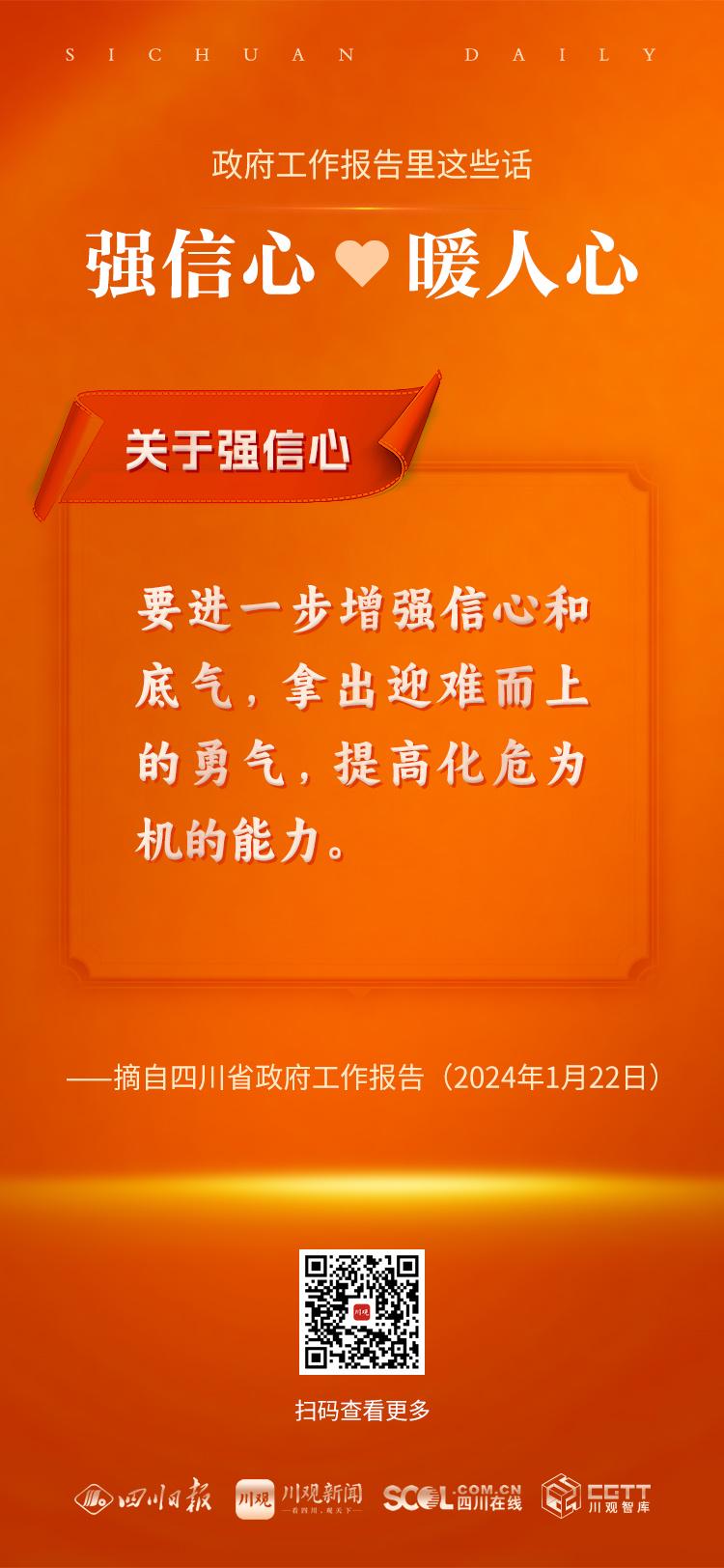 今年政府工作报告中有不少强信心、暖人心的话语。一组海报带你速览,让我们期待四川更美好的明天!
