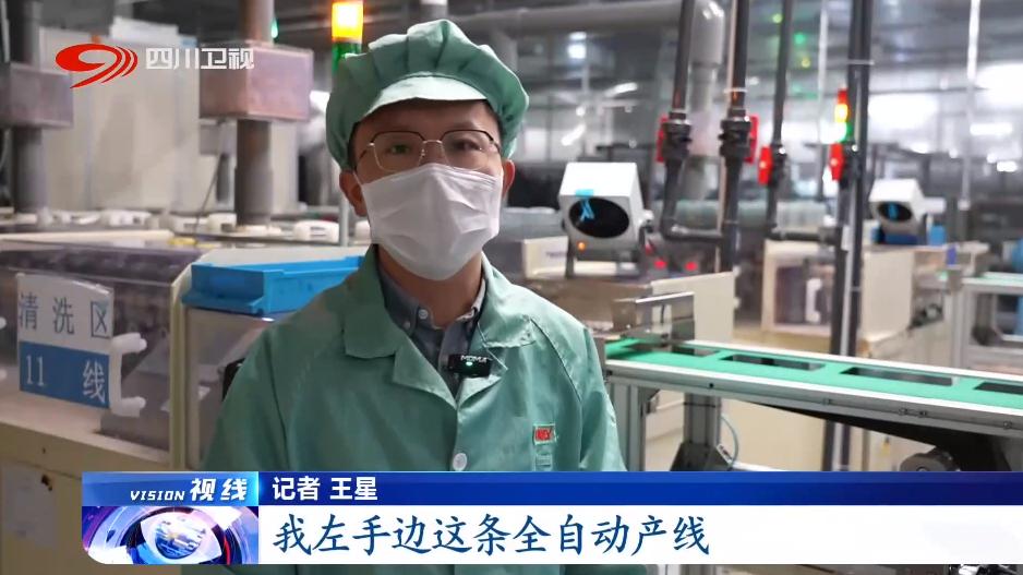 记者 王星:这里是信利眉山工厂,我左手边这条全自动产线,每天大概可以生产3万片手机液晶显示屏,全年可为全球用户提供1亿片手机液晶显示屏,主打第5代TFT-LCD高端车载及智能终端显示屏,信利眉山工厂也成为眉山第二个“百亿企业”。