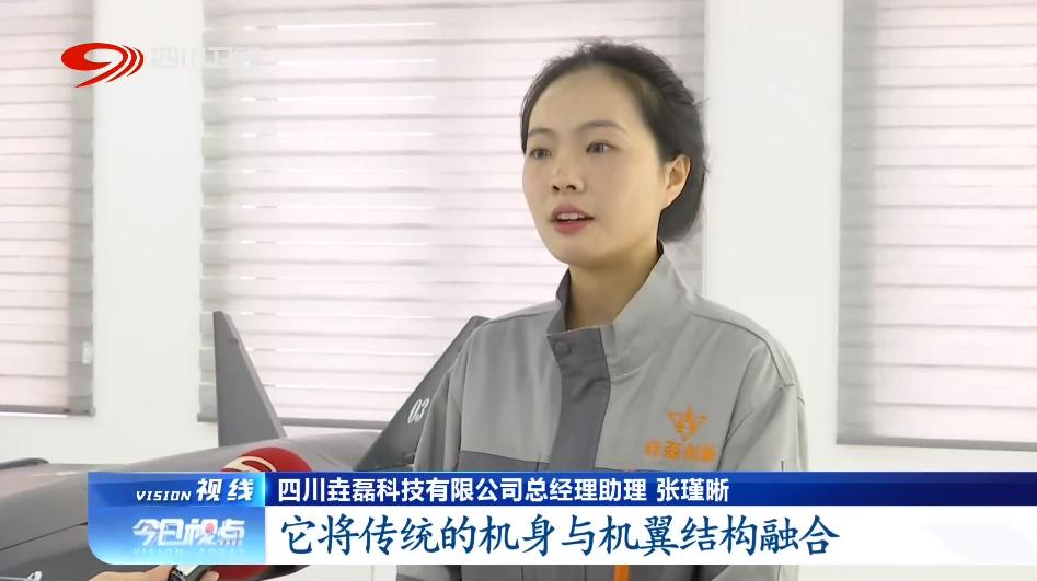 四川垚磊科技有限公司总经理助理 张瑾晰:它将传统的机身与机翼结构融合,变成类似飞行翼的外形。而V型尾翼会使雷达波向其它方向进行散射,探测雷达所接收到的雷达波就比较微弱,而且,采用了隐藏式进气道,达到了靶机隐身的目的。